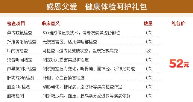 据西安中大医生介绍,现在耳鼻喉疾病在老年人中发病率非常高,但这些高发病是可防可治的,只要定期做耳鼻喉专业体检,做到有病治病、没病预防。作为儿女,如果你希望自己的父亲身体健康,远离耳鼻喉疾病,就带父亲来西安中大做一下耳鼻喉健康体检,不给父亲的健康留隐患。