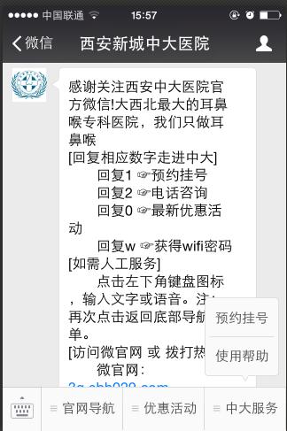 挂号排队、缴费排队……大半天时间就这么耗掉了,随着O2O医疗服务的崛起,为了使用户能够通过移动端进行预约挂号、线上支付,让医疗消费更快捷。西安中大耳鼻喉医院开通了微信支付功能,微信粉丝在玩微信的同时,并能享受“指尖上的医疗”福利。