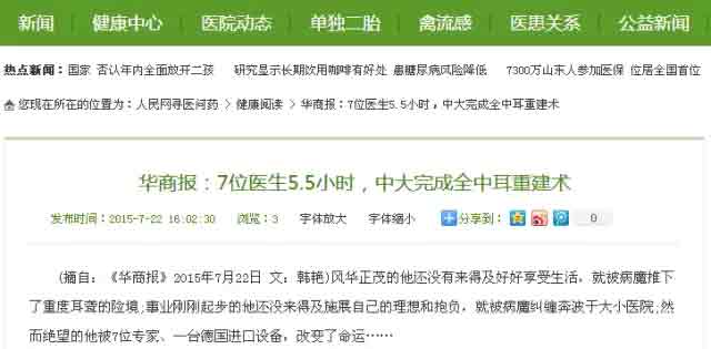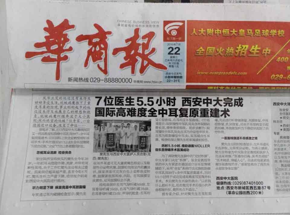 (摘自:华商报2015年7月22日 文:韩艳)风华正茂的他还没有来得及好好享受生活,就被病魔推下了重度耳聋的险境;事业刚刚起步的他还没来得及施展自己的理想和抱负,就被病魔纠缠奔波于大小医院;然而绝望的他被7位医生、一台 进口设备,改变了命运……