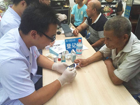 义诊紧张而有序的开始了,中大医护人员仔细为幸福小区居民测血压、做耳鼻喉健康检查,耐心回答每一位居民提出的疑难问题。提供义务咨询、测量血压、咨询、就诊等服务,并针对耳鼻喉常见病、多发病等疾病的健康知识进行详细讲解。及时发现幸福小区居民的潜在病情,为幸福小区社区居民提供最便捷的就医指南,太阳早早的都落山了,整个义诊活动仍在持续进行着。