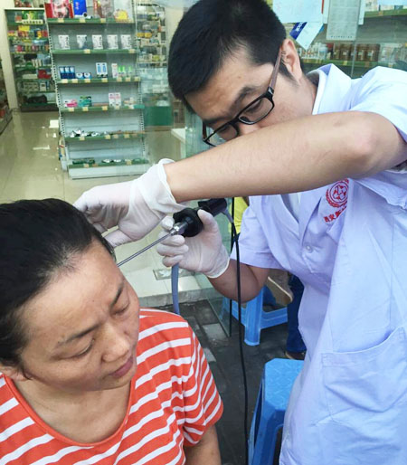 龙府北郡小区谢女士正在接受耳内窥镜检查