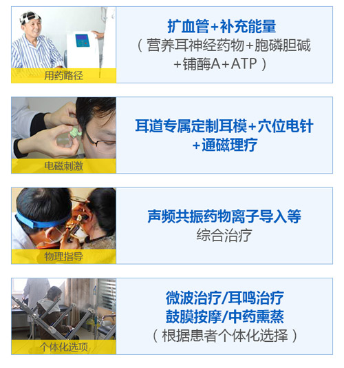 耳鸣是一种临床表现,耳朵生在人身上,是因为人体出现了故障,才有耳鸣。因此只有把人体这个整体调整到较好状态,才能较终治好耳鸣。“耳鸣耳聋TV疗法” 是中西医主要成果,制定出的一套系统治疗方法,具有活血化瘀、消肿散结、祛腐生肌、促生鼓膜,扩张软化血管、改善心脑供血,促进耳脉耳络畅通、芳香通窍、促进坏死神经细胞再生、消除耳鸣、恢复听力等功效,针对性治疗各种耳鸣。