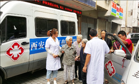 当天下午,一些需要治疗的老年公寓老人在中大医护人员的帮助下,一起到西安中大耳鼻喉医院进行诊治,并为部分长期服药的老人调整了治疗方案。大车家巷社区老年公寓的李奶奶高兴地说道:“年龄大了到医院去也不方便,还要坐车还要排队挂号,我觉得这次中大这么负责任的专车接我们看病,让我感觉到很温暖。”