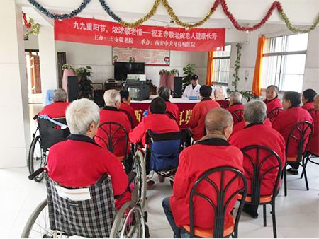 岁岁重阳,今又重阳,重阳节又称重九节、晒秋节,两九相重,因“九九”与“久久”同音,有长久长寿的含意,所以重阳节是一年中的敬老节。为了弘扬中华民族的传统美德,使敬老、爱老、助老的良好社会风尚进一步发扬光大。西安中大耳鼻喉医院义工团和义诊团走进王寺敬老院,为居住在这里的老人打扫卫生,并进行免费体检、健康宣教活动,为老人们带去温暖、带去关爱,一起共度佳节。