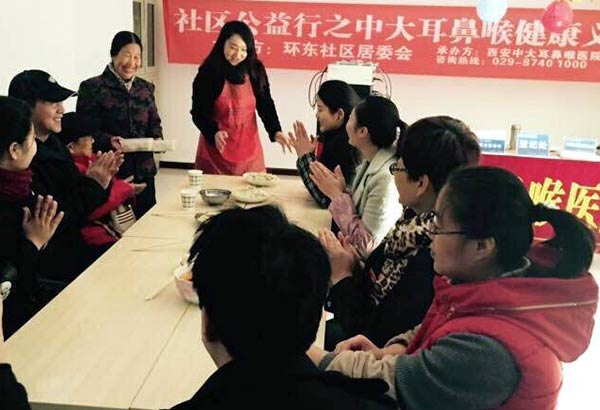 12月17日,受碑林区长乐坊街道办邀请,西安中大耳鼻喉医院代表来到了环东社区进行义诊,并参与了环东社区居委会专为残疾人举办的冬至包饺子活动。现场气氛热闹而温馨。
