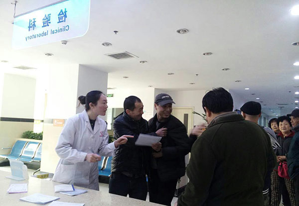 医护人员耐心协助聋人朋友填写登记表