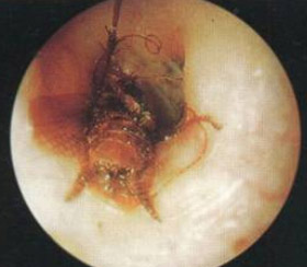4.如异物较大,且于外耳道深部嵌顿较紧,须于局麻或全身麻醉下取出异物,必要时行耳内切口,甚至需凿除部分骨性外耳道后壁,以利异物取出。幼儿病人宜在短暂全麻下取出异物,以免因术中不合作造成损伤或将异物推向深处。