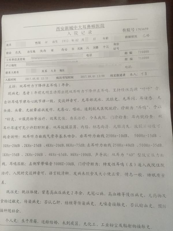 9月1日中午,西安中大耳鼻喉医院来了位老人,面色苍白,手频繁的摸左耳朵。这位老人姓何,来自西安市长安区,何奶奶称自从与自己相依为命的老伴去世后,以前性格开朗、待人和蔼的她不知为何变得越来越寡言少语,有时为一件小事也会忍不住发脾气,一年多来总是受耳鸣折磨。
